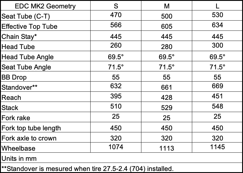 - Rear tire clearance: 27.5 x 2.4", front 20 x 2.4"