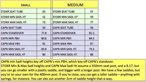 The top tube for the Captain are very long (Small: 647mm Med: 690mm) to allow use of bars like the Nitto Bosco w/o feeling cramped.